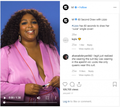 Also, MTV’s 60-second drawing series, which had celebrities sketching their own album covers in less than a minute. It’s a simple concept, and takes almost no set-up to execute, but is captivating and showcases the celebrities and MTV’s brand. See, for example, Lizzo drawing the cover for her album ‘Juice’.