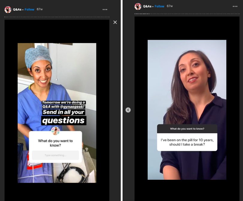 It’s common to use an Instagram question sticker to host Ask-Me-Anything sessions. You can invite a team member or even an influencer to join a Q&A where your followers can ask all sorts of questions.