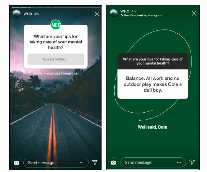 Many ambassadors and influencers add Question stickers to their plan during a takeover to engage with the brand’s followers. It’s simple, easy, and very engaging.