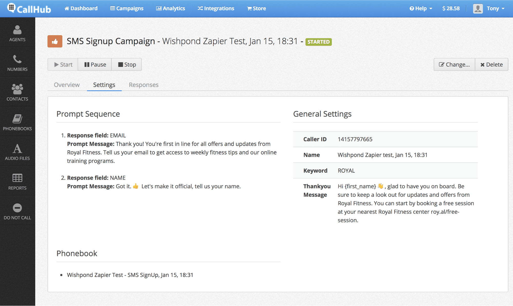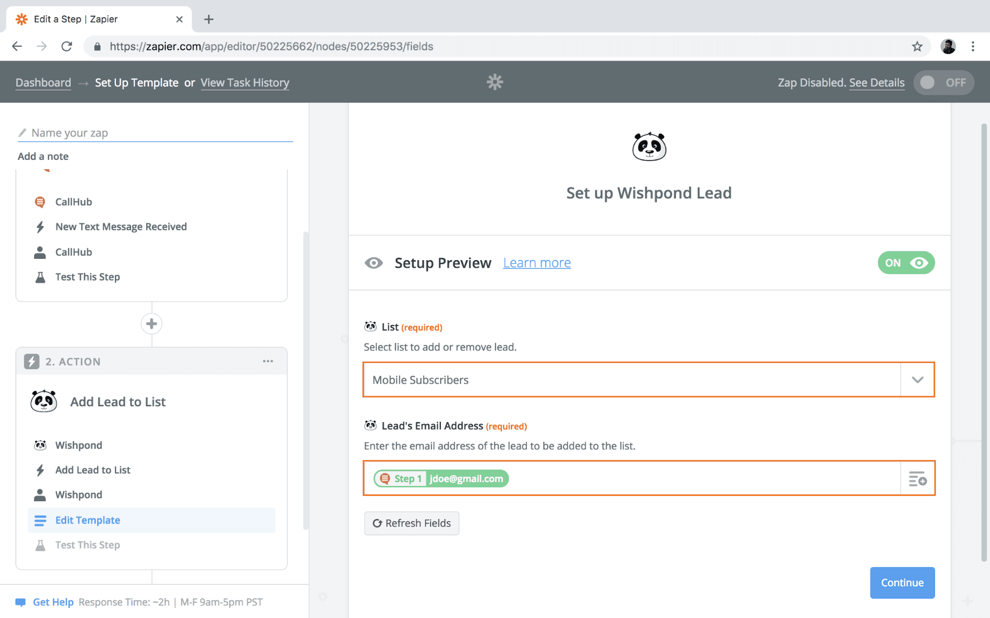 You’ll need to create two automation or ‘Zaps’ in Zapier to send leads from your Text to Join campaign in CallHub into a specific list in Wishpond. The first automation sends the information you collect through texts to Wishpond and the second adds the lead to a list of your choice which would then trigger the nurturing emails.