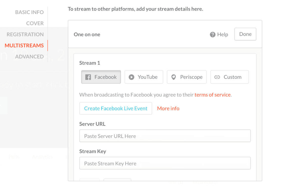 If you are on the lookout for a tool that lets you stream live videos to more than two social media platforms, you need to check out Crowdcast. It can be used to stream billable classes and virtual summits to Facebook, YouTube and Periscope.