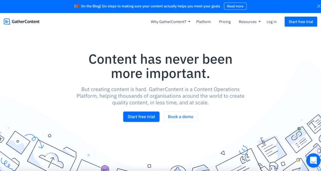 This is just my opinion, but I’d say it doesn’t do a perfect job illustrating either the benefits or the pain point solved with the platform. The subheading gets a little more specific with “GatherContent is a content operations platform, helping….”