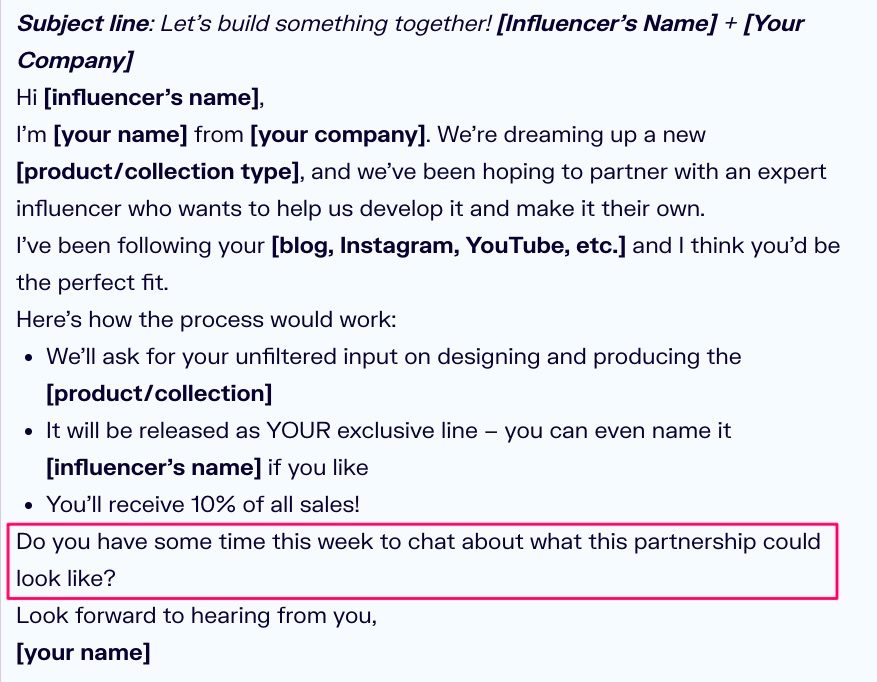 Here are a few tips for adding a CTA to your influencer outreach email: