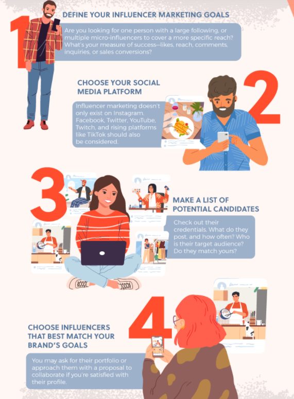 Do you want them to directly sell your products by creating reviews, videos, or social media posts about it? Or will you be creating infographics or videos for them to promote your products? This will help you set some basic expectations right from the start.