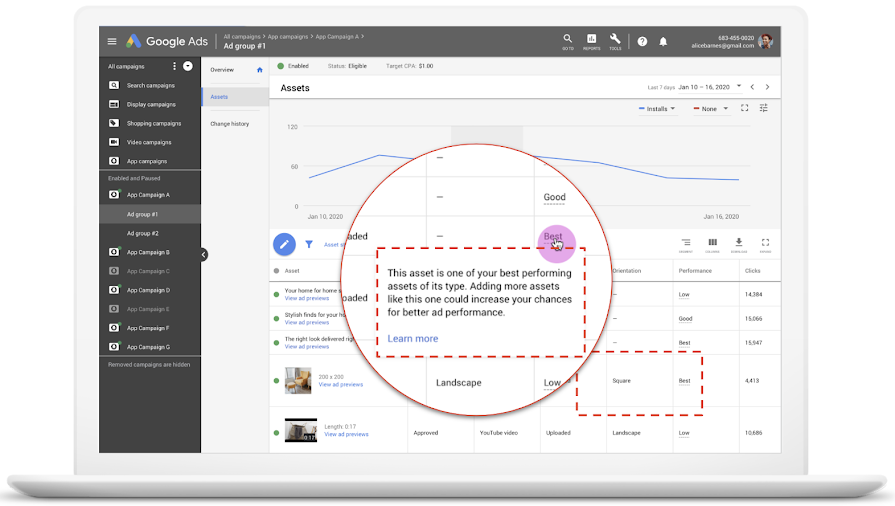 - How many people installed your app? Note there is a difference between downloading and installing. Compare the number of installs and where the user found your app to learn which of your campaigns performed the best.