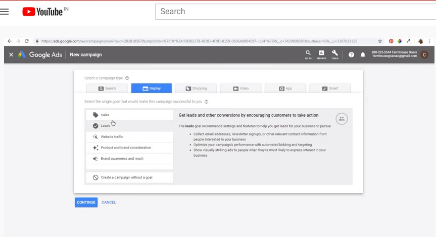 - Choose “Display campaigns” option
