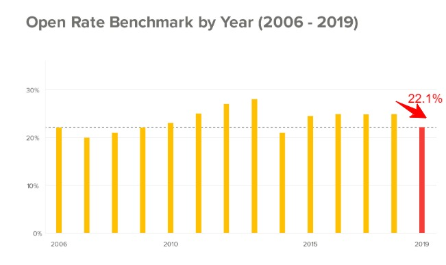 Unless the mail recipient opens your email, they will not be able to interact with it. Therefore, the success of your email strategy rests upon the email open rate. In 2019, the industry average email open rate was 22.1 percent.