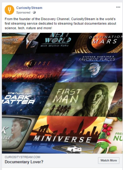 Check out this by Curiosity Stream, an edutainment company. It effectively directs the user to their home page.