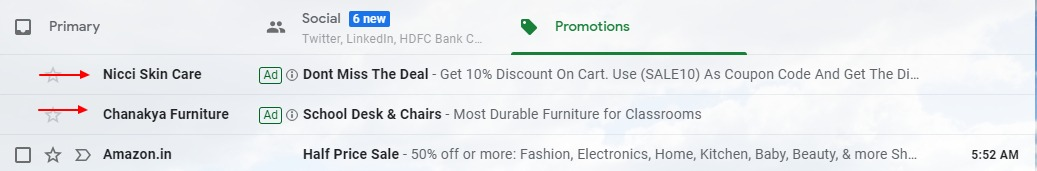 That’s where Google Sponsored Promotion (GSP) pitches in! GSP is an interactive ad that shows up in the ‘Promotions’ or ‘Social’ tab of the personal Gmail inbox, the one place your target audience is! They show up right at the top of the inbox, getting people to open the ad and click through the landing page.