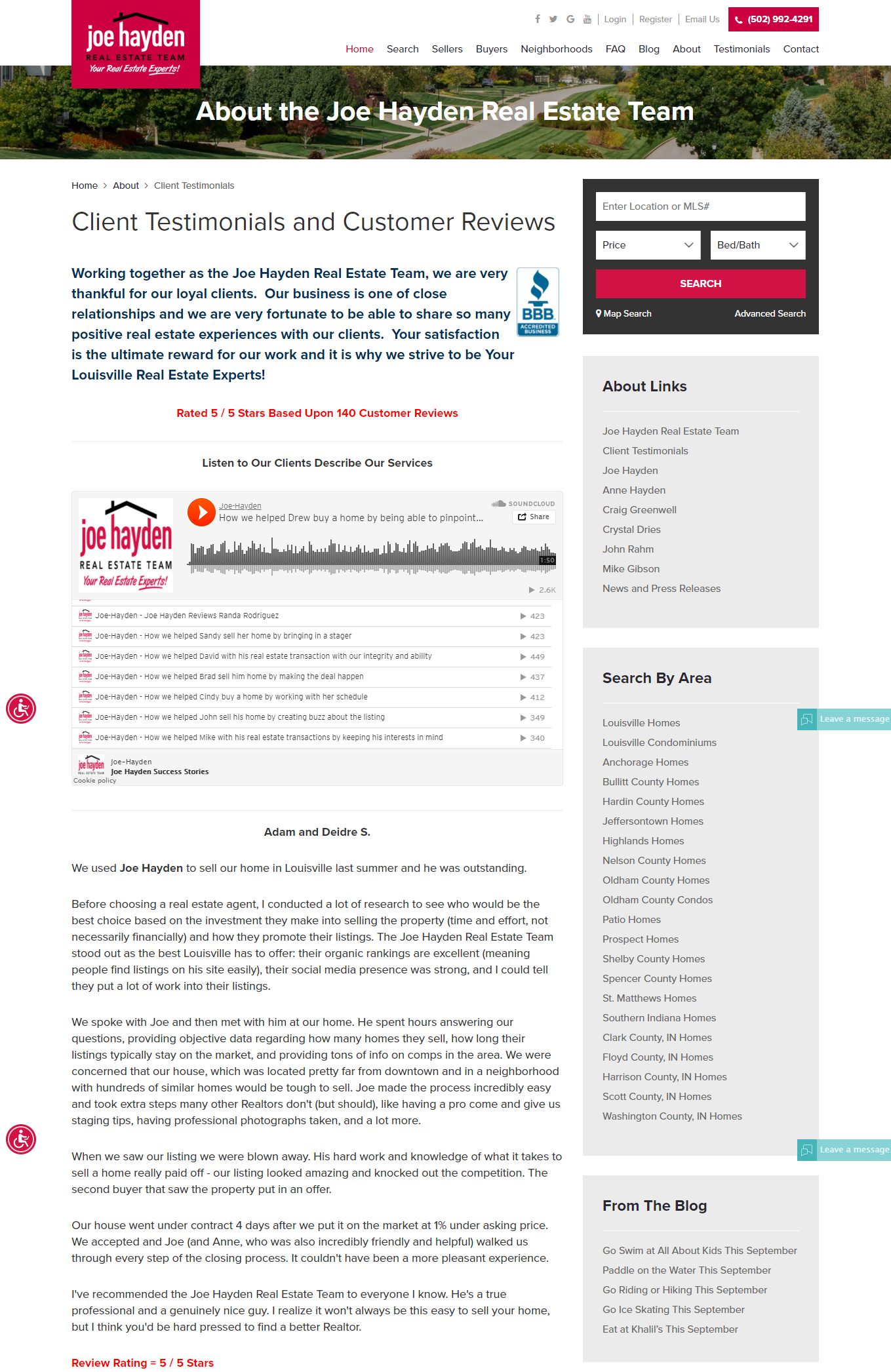 Putting your customer reviews or testimonials, whether they’re direct quotes or yelp reviews, can help to boost your potential prospects’ confidence in your skills as a realtor.