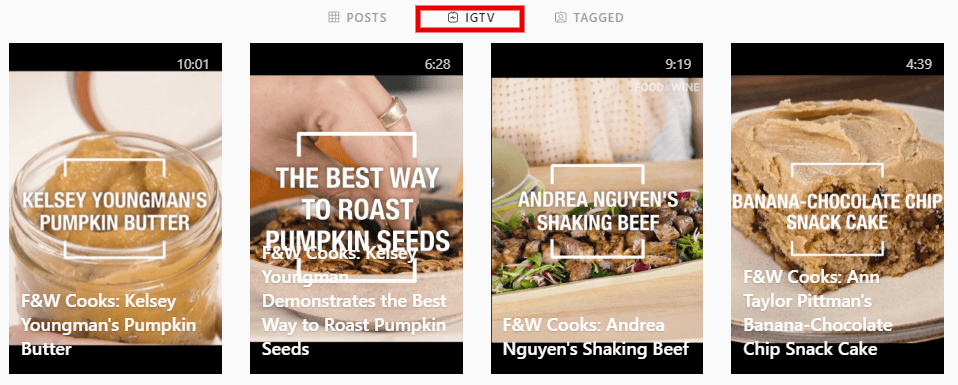 Once you’ve created your IGTV channel and video, they’re automatically stored in your feed next to your post and tagged images.
