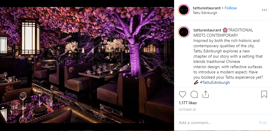 Tattu has been listed as one of the most Instagrammable restaurants in the United Kingdom.