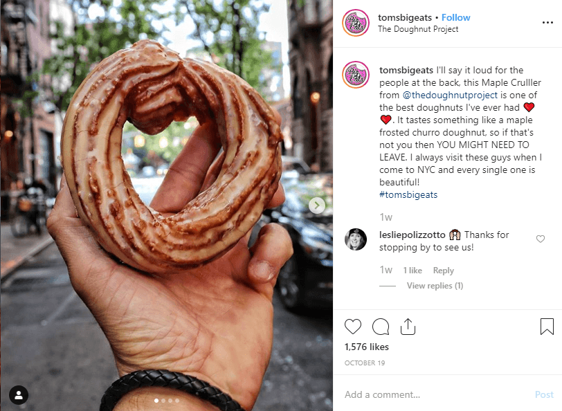 Close-ups and macros shots can put your dish at the focal point of your post. Foodies love when your post is more focused on the food than the restaurant itself.