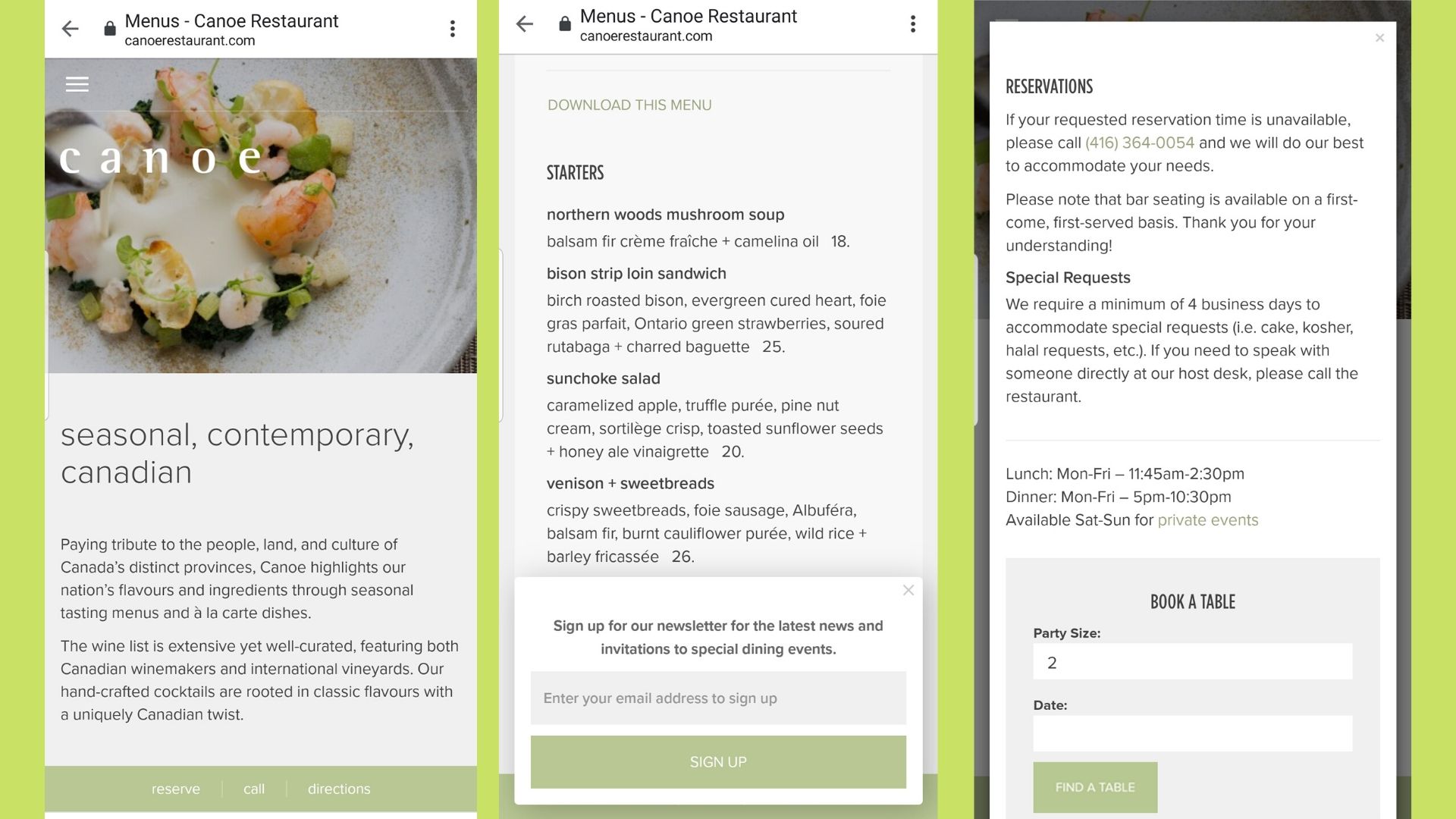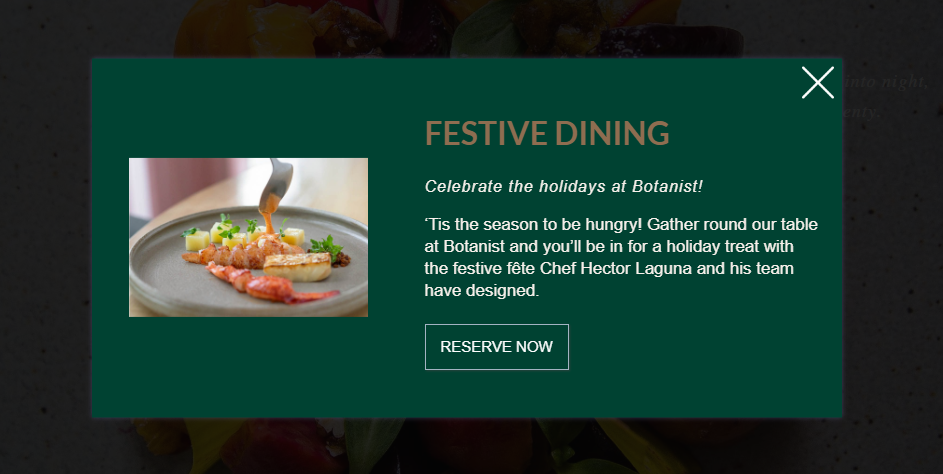 The Botanist restaurant landing page has stunning professional images of their food, leaping off the screen and urging visitors to choose them as their next restaurant location. If you want to have the same effect on your landing page, you’ll need to invest in an expert photographer to showcase your best meals and plating.