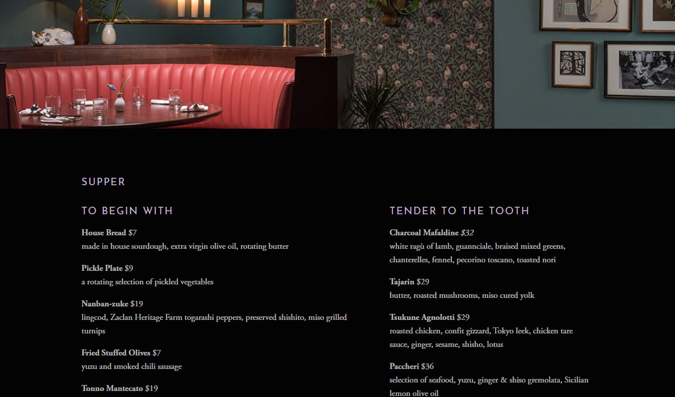 A popular mistake amongst restaurant landing pages is that they tend to hide or avoid displaying their menu.