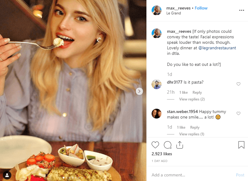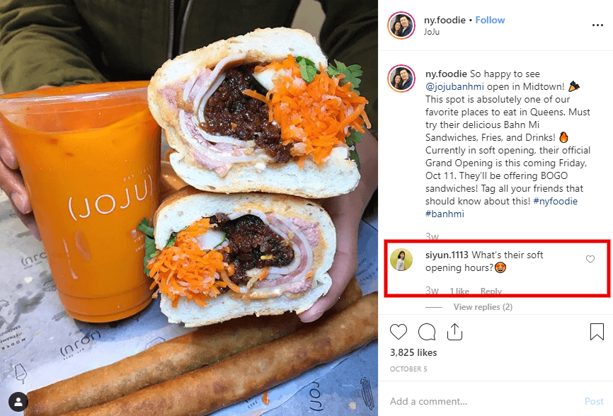If you take a look at the Instagram post’s high-engagement (likes and comments), most are from food lovers who are sincerely inquiring about their food.