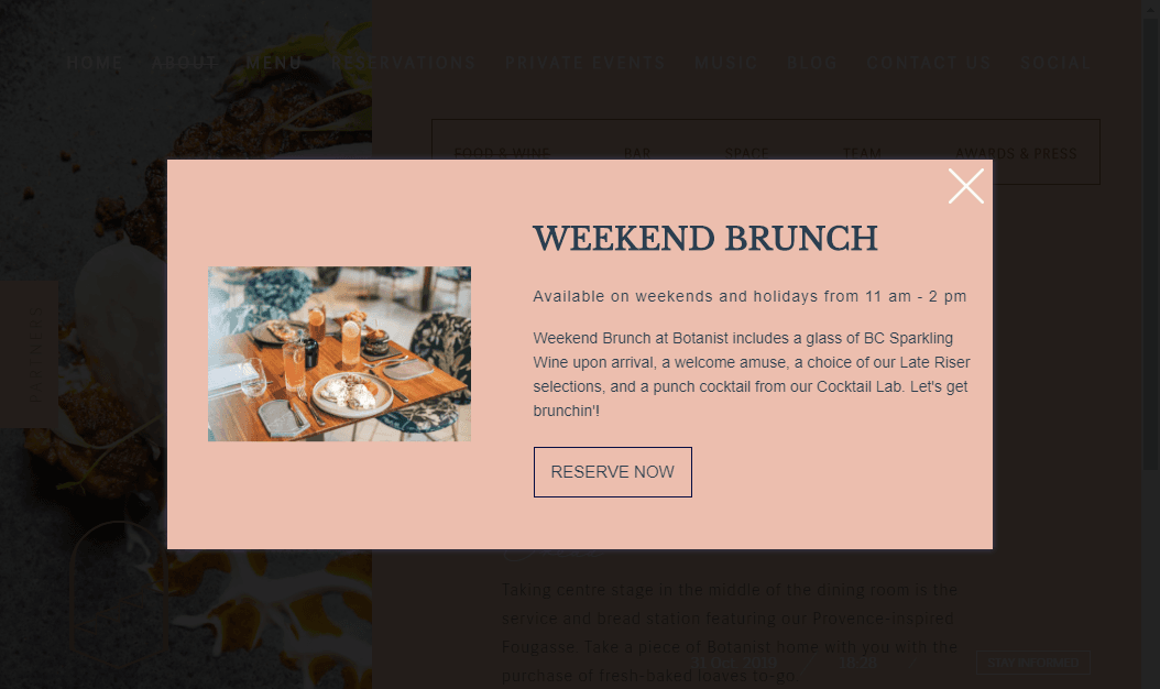 If you already have a website created, be sure to have a website pop-up installed so you can promote specials and capture online reservations either as they land on your site or as their about to exit.