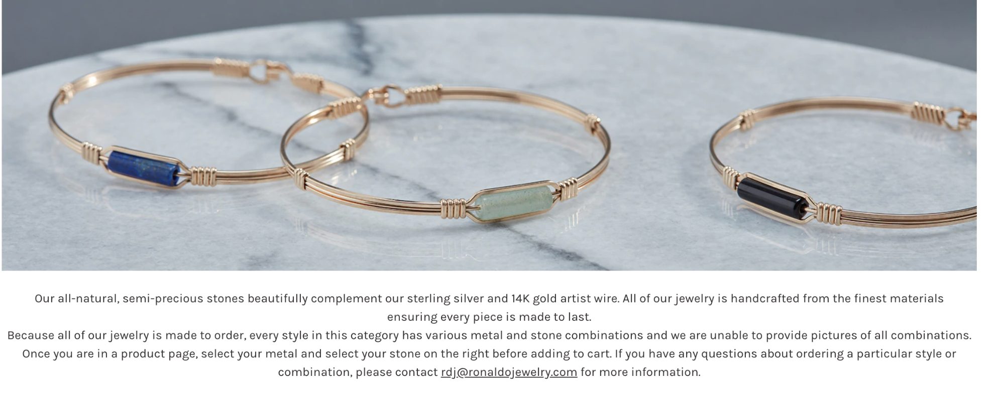 Product descriptions: The goal of a product description is to persuade customers they want — or need — glitzy earrings for a night out or a ruby ring as a graduation gift. Have some fun creating an image of how your jewelry fits a customer’s aspirational lifestyle.