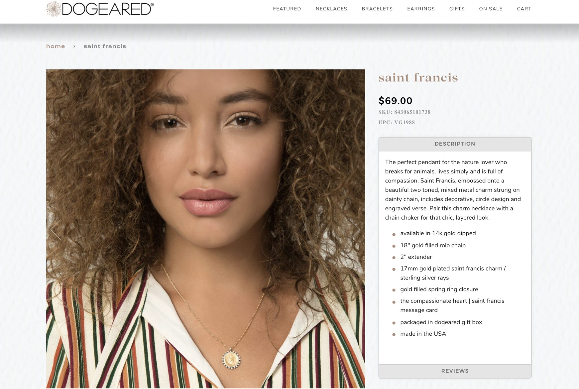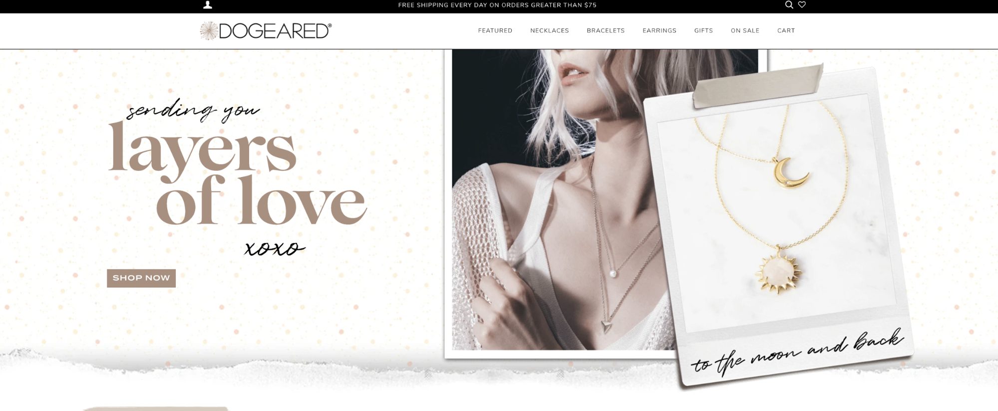 All websites should be visually appealing, but particularly jewelry vendors whose products are coveted for their distinctiveness and beauty. Dogeared opts for a clean, attractive layout with plenty of white space to put the emphasis on their jewelry.