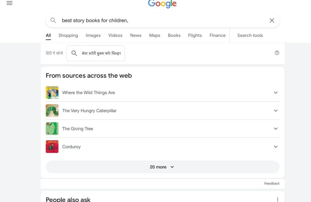 For example, when you search for “best story books for children,” the results that appear at the top are due to a knowledge graph result.