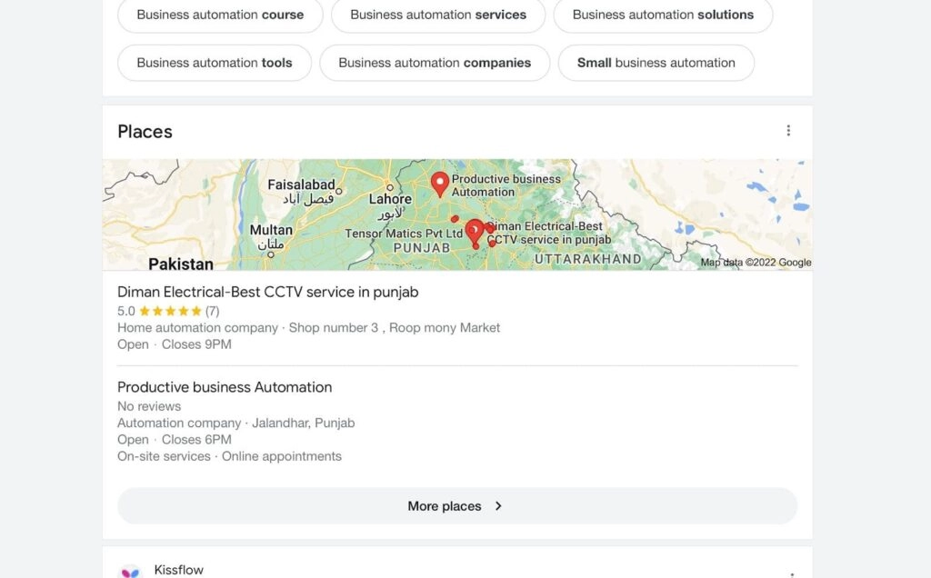 For instance, when we search for the term, “business automation,” we get videos, local services, and top companies that provide business automation along with the standard results.