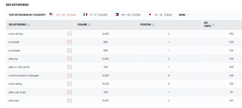 For example, CloudTalk is a call center automation software solution. They target multiple topics on different keywords to improve their search rankings. These include:
