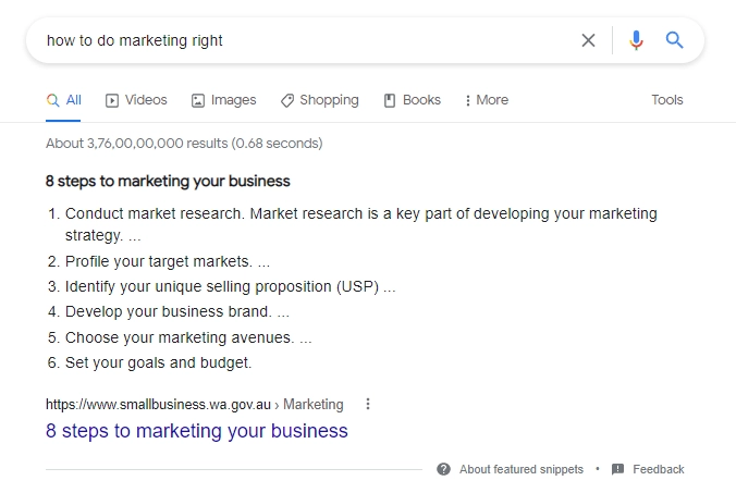 Featured snippets are focused on providing more direct information to users. It highlights excerpts of content that appear at the top of a Google search results page in what is known as “position 0.”
