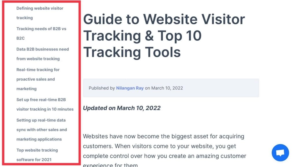 Salespanel included several different related keywords in this blog post. As a result, it helped them establish brand authority and provide users with a complete solution for “website visitor tracking.”