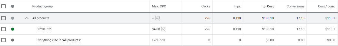 - By default, Google Ads provide an “All Products” group, but this isn’t what you want. Turn this into a SPAG by clicking on the “+” sign and select the designated product in the ad group name. Additional tip: Always exclude the “everything else” subcategory or all your efforts will be in vain.