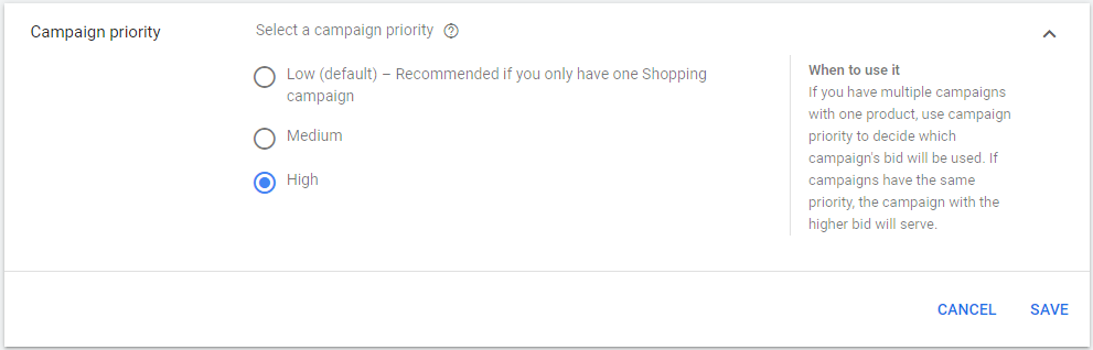 - Set your campaign priorities: Maximize your campaign’s potential by giving the highest priority to your generic campaigns. This way, you can capture all the traffic the product feed is optimized for.