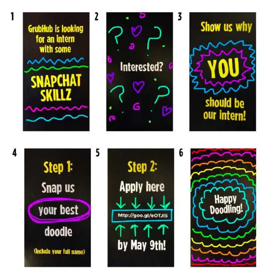 GrubHub also took this one step further by recruiting their interns through a Snapchat Doodle challenge!