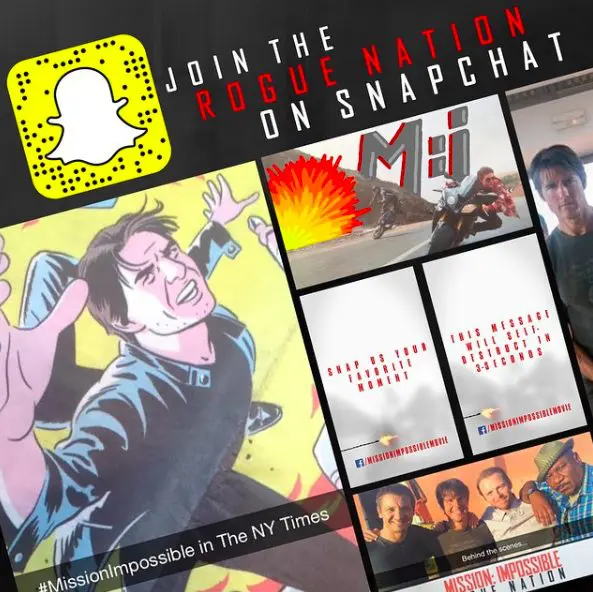 Snapchat contest for promoting a movie? Yes, you heard that right! Paramount Pictures launched their Snapchat campaign for promoting their movie Mission Impossible: Rogue Nation.