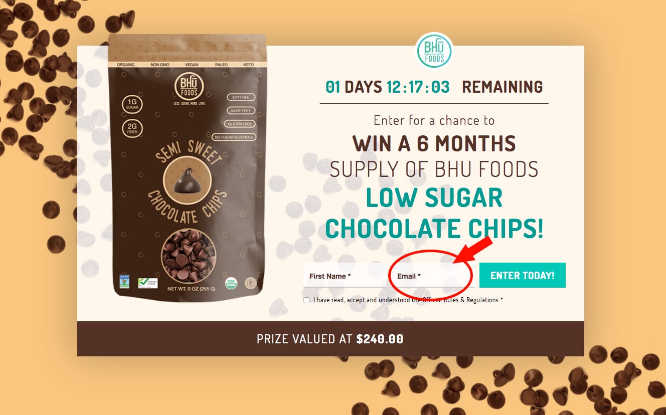 Say for example you entered to win a year supply of chocolate chip cookies (like in the example above).