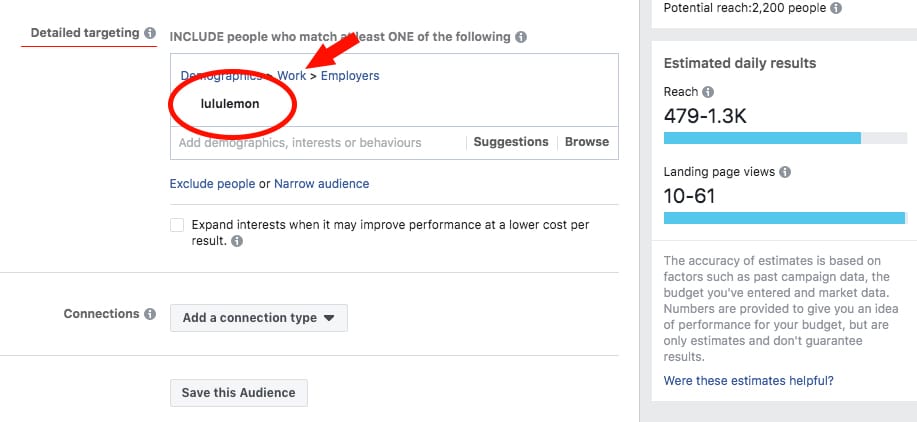 If you’re promoting a social campaign, the best thing to do would be to go into Facebook ads and target “Lululemon” as the main audience interest, right?
