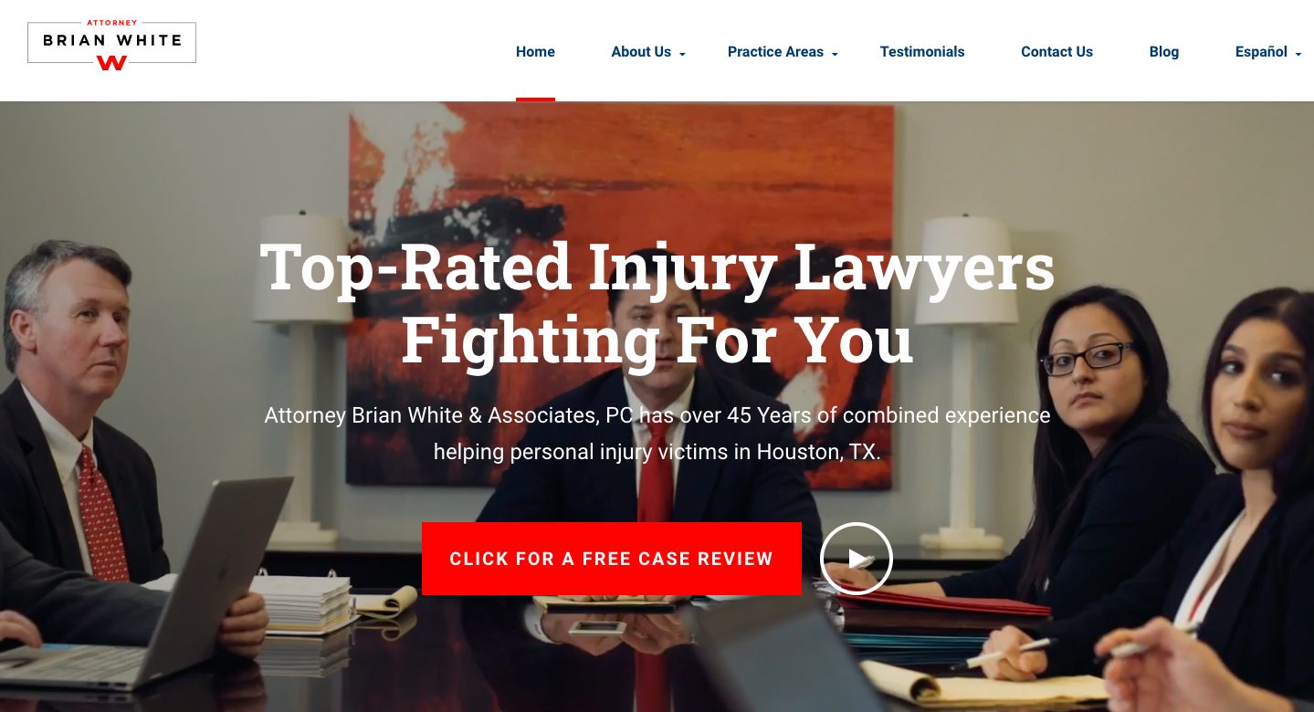 Brian White & Associates, a company based in Houston, does this extremely well by focusing on not just the lawyers they bring to the table but the specialty they excel in. They mention it within their heading, the paragraph beneath it, and even the features as you scroll down their home page.