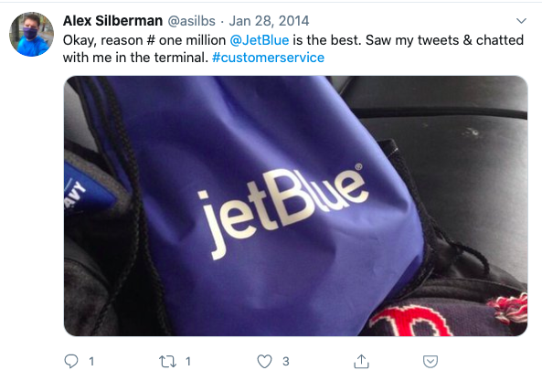Another JetBlue trait is its ever-present Twitter team. They are constantly engaging with customers online, solving queries that have been posted to Twitter, and often reply in less than half an hour with a solution for problems as complicated as refunds and cancelations. Twitter is more than a way to update customers on discounts- it is their way to engage with customers.