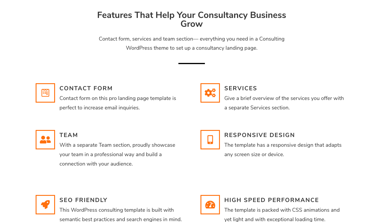 A good example of this in action is what Cyberchimps has done on one of their product landing pages to display their features-