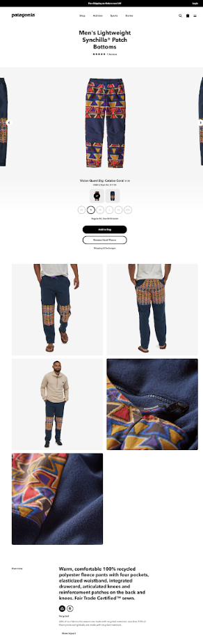 Therefore, write your product copies in bullet points and use different font sizes and a short paragraph to make them easy-to-scan. Outdoor gear seller Patagonia does a fantastic job with their product descriptions.