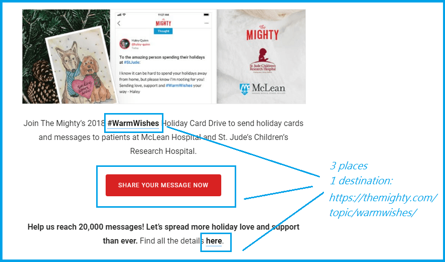 For that, choose the desired action you need right now, and limit your email to that one. It’s fine to link to it in 2-3 different places of the email, but that link should lead a reader to one destination.