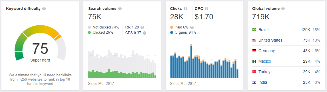 For example, if you search for the keyword fitness on google you’ll see the following search results, courtesy of Ahrefs: