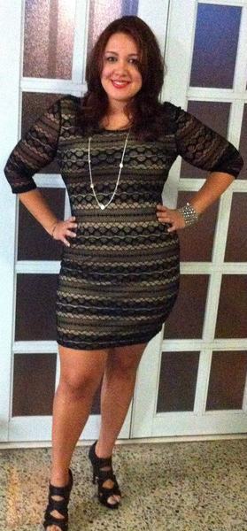 De vez en cuando, hay que tomarse el tiempo de vestirnos de pies a cabezas y sacar a pasear esa bella actitud de orgullo Plus! Tomada poco antes de salir a cenar; traje ceñido crema y negro con tacos altos. (Soy talla 14/16 y mido 5'9)