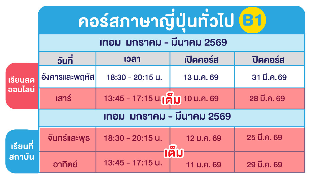 **จบแล้วสามารถต่อคอร์สภาษาญี่ปุ่นเร่งรัด 2 หรือคอร์สเรียนภาษาญี่ปุ่นทั่วไประดับ Intermediate 1 ของเจเซ็นเตอร์ได้เลย**