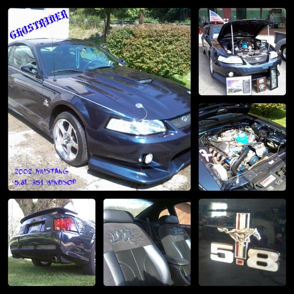 2002 5.8L 351W, KB pistons, comp cam, Ford racing aluminum valve covers, Highline dist., BBK full length headers, Flowmasters, straight pipes, 4.10 gears, 17" SVT wheels, full custom body; paint; and interior. SHOW