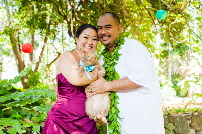 Our fur keiki, Hilo, is a 5-year-old rescue cat we handraised from a bottle baby. He was one of our ring bearers during our wedding cermony last July. A constant source of joy, humor, and love; he is the reason why we are passionate about cat rescue.