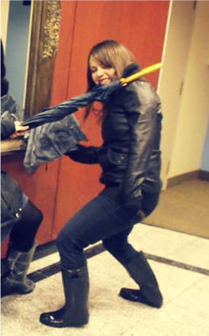 A friend and I joke around before going outside to enjoy the spring rain #WeLoveRain