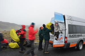 Unloading packs in the rain at the trail-head for the start of a 2 week expedition through southern Iceland. The rain kept up for three days! #WeLoveRain