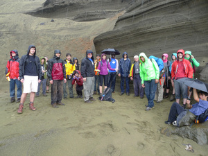The rain definitely did not stop us from looking at the geology of Mahana Beach, Hawaii and of course, did not prevent us from taking a great group shot :)