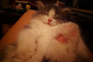 這是弟弟剛抱回來時拍的那時他才兩個月沒安全感又害怕所以特別黏人所以睡覺時都會用毯子包著他陪等他睡著才敢離開今天參加比賽跟大家分享他的成長生活