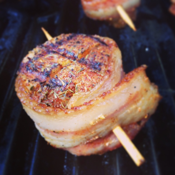 fresh BACON, fresh scallops, a little spice and a hot grill