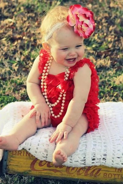 Little Harli Ann in you romper, headband, and flower clip